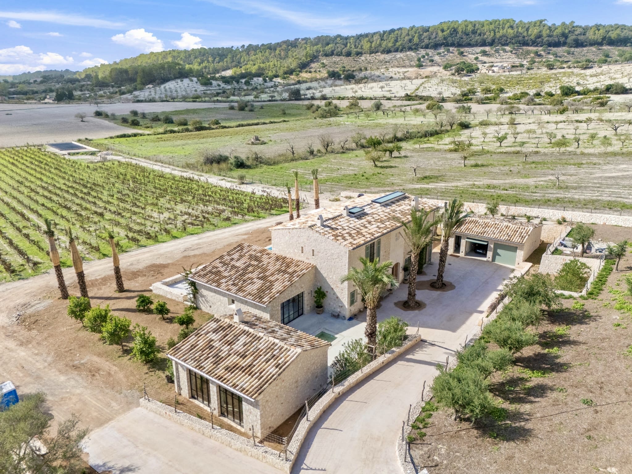 Le presentamos esta excepcional finca mediterránea de nueva construcción situada en el pintoresco y demandado municipio de Montuiri, en el corazón de Mallorca. Con una ubicación privilegiada rodeada de viñedos, naturaleza autóctona y vistas panorámicas a la montaña , esta propiedad ofrece un entorno de total privacidad, tranquilidad y elegancia.