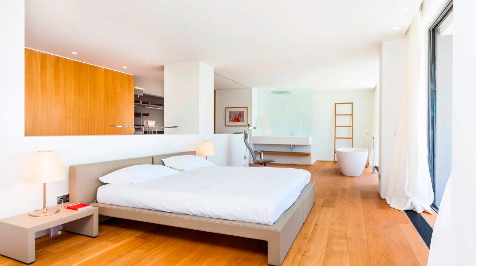 Su diseño contemporáneo, con líneas limpias y grandes superficies acristaladas, permite que la luz natural inunde todos los espacios interiores, realzando la sensación de amplitud y conexión con el entorno.