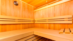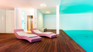 Zona de spa privada interior, con piscina climatizada, sauna y área de relax.