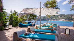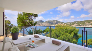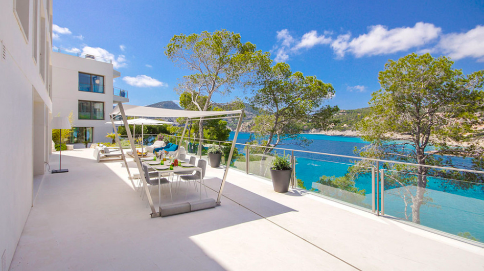 Terraza de 200 m² con vistas panorámicas 360º al mar y a la sierra de Tramuntana.