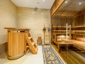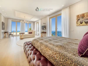 La planta inferior alberga la zona de descanso principal, compuesta por dos amplios dormitorios, cada uno con acceso directo al exterior. Esta planta también cuenta con una sala de spa privada, ideal para momentos de relajación y cuidado personal. Desde aquí se accede directamente a una terraza con piscina privada, rodeada de zonas de solárium y vegetación, perfecta para el disfrute en cualquier época del año.