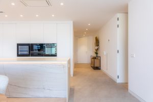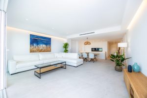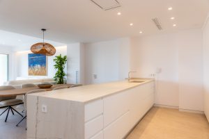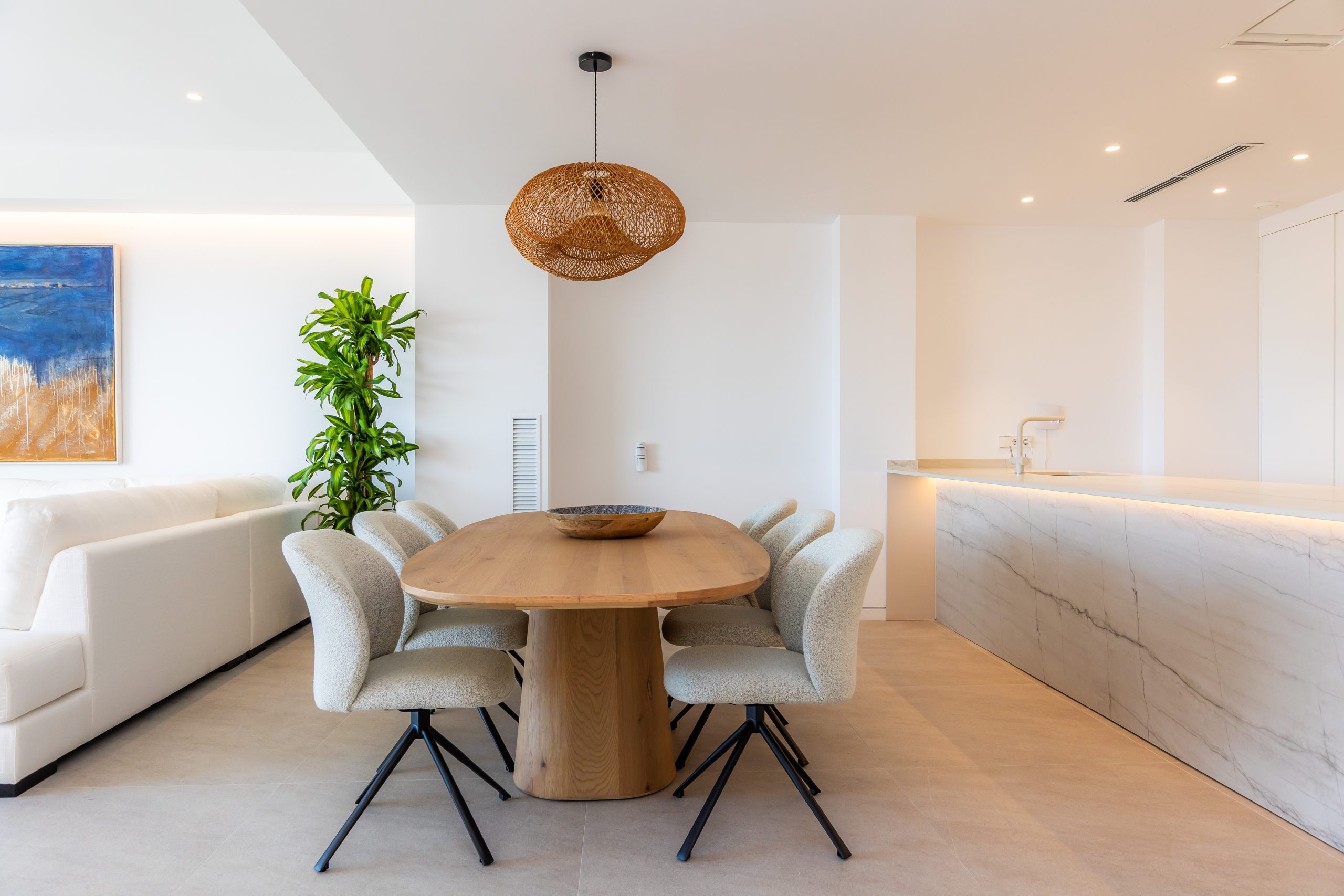 Este elegante piso de diseño contemporáneo ha sido completamente renovado con materiales de alta gama y destaca por su impresionante vista panorámica al mar, que puede disfrutarse desde prácticamente todas las estancias.