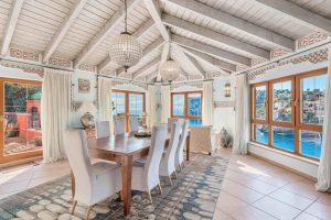Al acceder a la vivienda, se encuentra un elegante y luminoso espacio abierto que integra el comedor y una cocina moderna de estilo abierto, completamente equipada. El ambiente fluye hacia un amplio salón con grandes ventanales y acceso directo a una terraza con vistas panorámicas al mar, perfecta para comidas al aire libre, momentos de relajación o simplemente contemplar las puestas de sol sobre el mar.