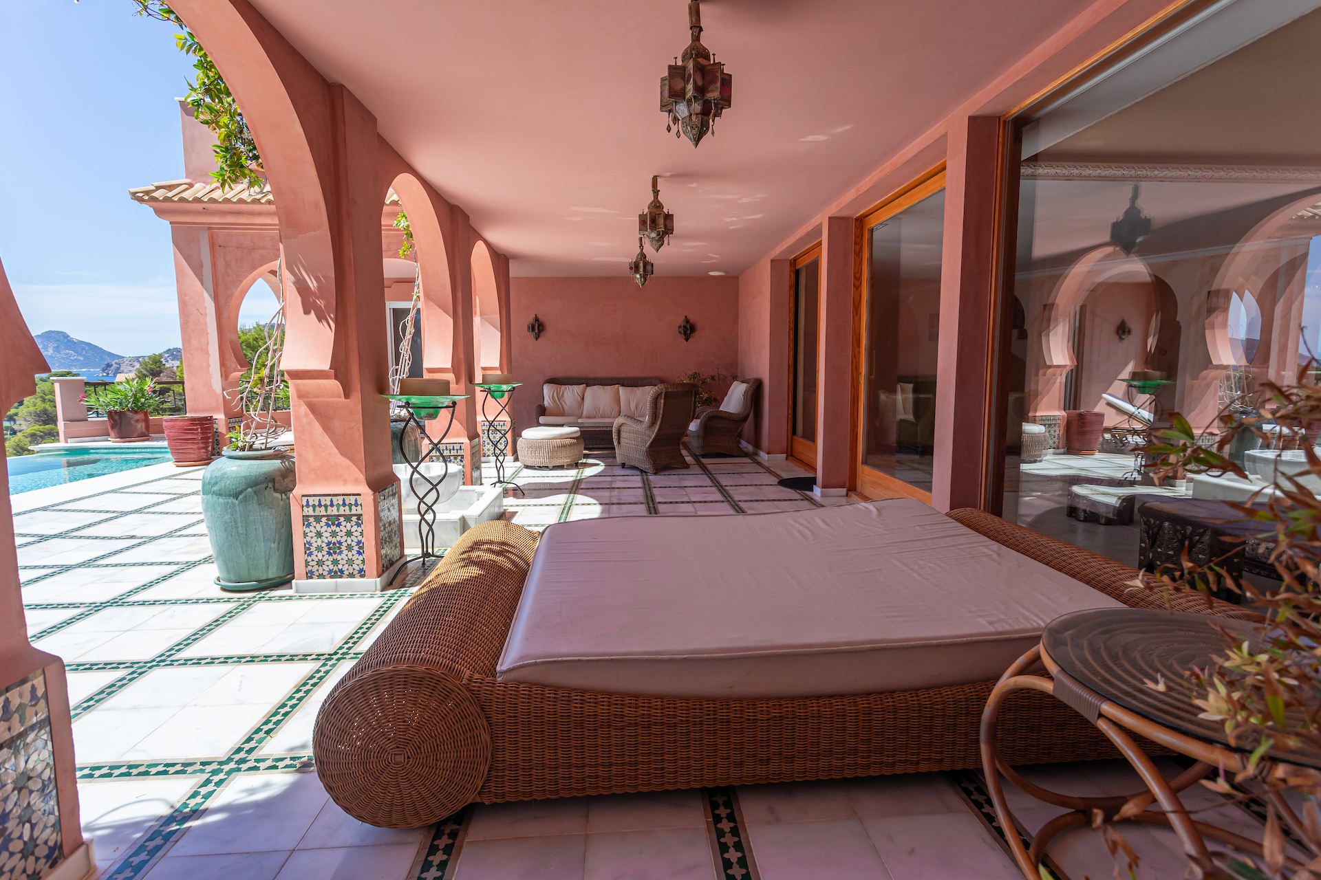 Construida en el año 2002 con materiales nobles y acabados de alta calidad, la villa ofrece una generosa superficie construida de 616 m², distribuidos de forma funcional en tres plantas, ideal para disfrutar del estilo de vida mediterráneo durante todo el año.