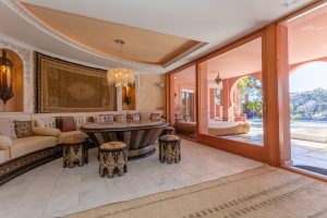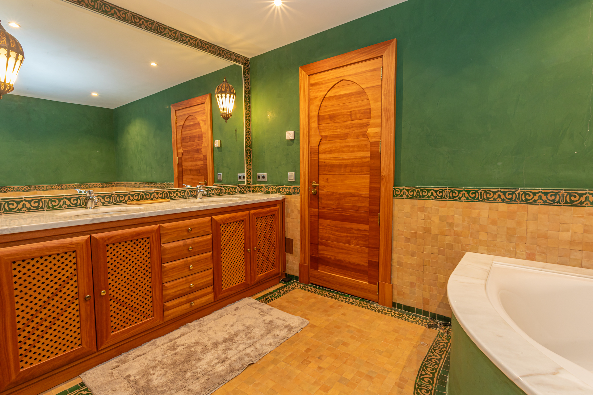 En este nivel se encuentra una acogedora sala de estar con acceso directo a la zona exterior con piscina y amplias terrazas. Este espacio es ideal para el entretenimiento y el descanso. Además, la planta baja alberga un completo spa privado, equipado con una sauna, una sala de masajes y área de relajación. Aquí también se ubican dos dormitorios dobles, ambos con baños en suite con bañeras. Uno de estos dormitorios destaca por disponer de un vestidor privado, que aporta un extra de confort y privacidad.
