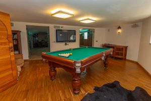 La planta sótano ofrece una excelente zona de ocio y bienestar. Incluye un gimnasio totalmente equipado, una sala de juegos con mesa de billar, y un apartamento independiente ideal para el personal de servicio o como alojamiento para invitados. Este apartamento cuenta con salón, cocina, dormitorio y baño propio. Además, hay espacio adicional para almacenamiento y área técnica.