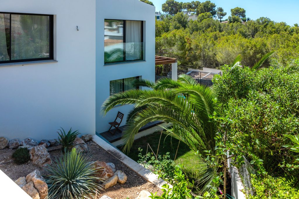 El rediseño integral de los jardines exteriores ha supuesto una reconfiguración completa de las áreas verdes, incorporando nuevas especies vegetales adaptadas al clima local, sistemas de riego eficientes y soluciones de paisajismo contemporáneo que realzan la belleza natural del entorno. Esta actuación ha logrado transformar el jardín en un espacio de disfrute, contemplación y valor añadido para la propiedad.